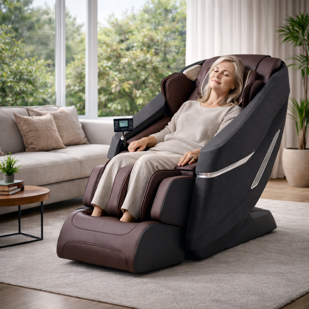 Nos fauteuils de massage ne sont pas seulement performants : ce sont de véritables pièces de mobilier. Leur design sobre et élégant leur permet de s’intégrer naturellement dans votre intérieur. Discrets, raffinés et harmonieux, ils trouvent leur place sans jamais dénaturer votre décoration, tout en devenant un point de confort incontournable.